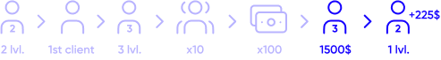 因此,第 2层合作伙伴将获得 1,500 美元(推荐客户)+ 225 美元(第 3层合作伙伴)= 总计 1,725 美元。
